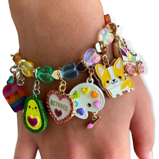 Charm it! Gold Rainbow Heart Bead Stretch Bracelet