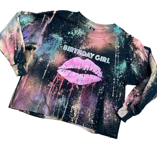 Bleached Long Sleeved Custom Tee Birthday Shirt (Front & Back)