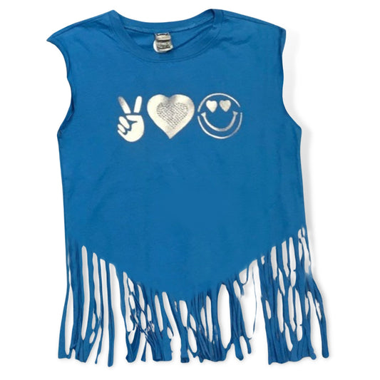 Peace Love Smiley Custom Chevron Fringe Camp Tank