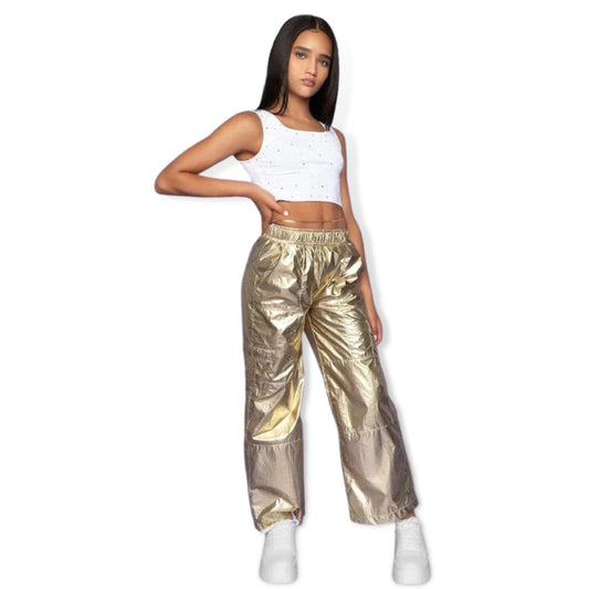 Hannah Banana Silver Pleated Faux Leather Skirt