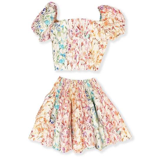 Theme Pink 70s Floral - The Jules Double Ruffle Smocked Waist Mini Skirt