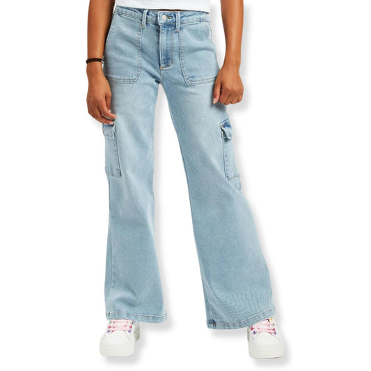 Tractr Light Indigo Patch Pocket Cargo Straight Jeans