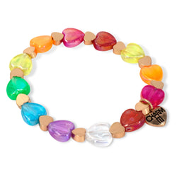 Charm it! Gold Rainbow Heart Bead Stretch Bracelet
