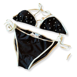 Dalai Black and White with Pearls Dot Luara Bikini Set