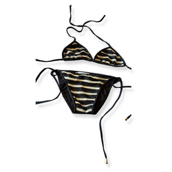 - Bottoms: The matching crochet bottoms provide moderate coverage while maintaining a fashionable look.